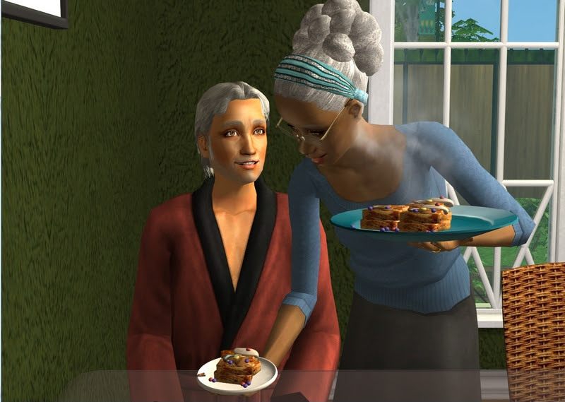 1. It's so hard to reply to comments about my Sims' longevity without giving anything away, seeing I already know who dies when. So I'll just say that it would indeed be very nice if Kendal and Lake could enjoy their retirement together for a while. :)